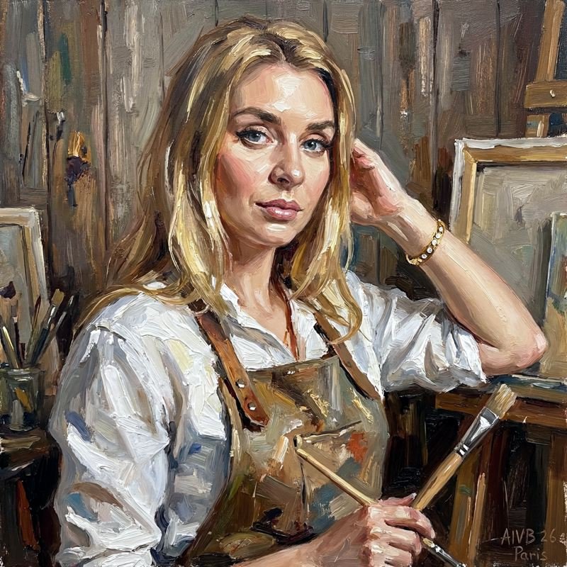Mais il y a aussi ces autoportraits, ces fragments de moi que je laisse surgir sur la toile. Ces images de ma propre âme, infiniment petites et pourtant infiniment vastes, comme des paysages intérieurs. C’est dans ce moment précis que je me révèle, que je vous invite à me voir sans voile, sans détour. L’autoportrait est un acte de naissance, de révélation. C’est le seul instant où je m’autorise à vous partager qui je suis, à vous laisser pénétrer dans le sanctuaire de mon être.