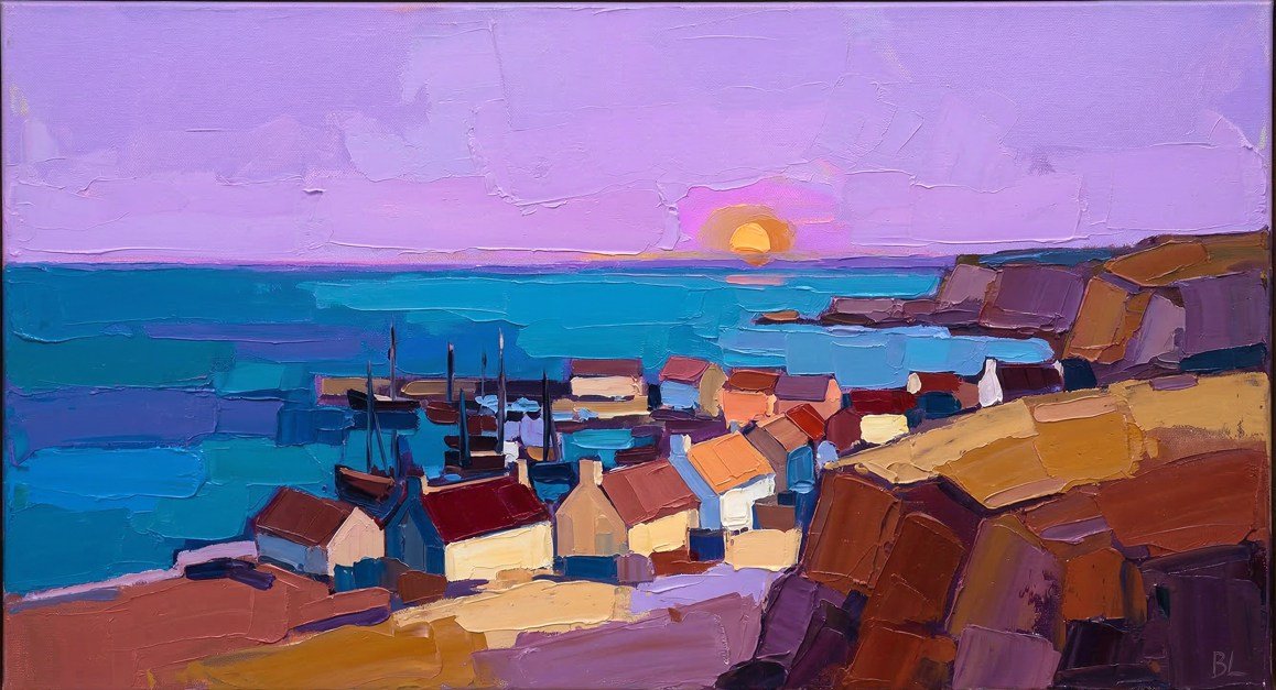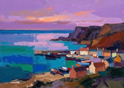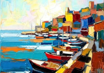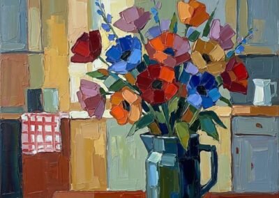 Par la même, son travail repose sur un équilibre subtil : un synthétisme de la forme – elle ne cherche pas le détail – associé à une grande fluidité colorée. Les teintes, parfois irréelles, ouvrent un espace entre perception et imaginaire.