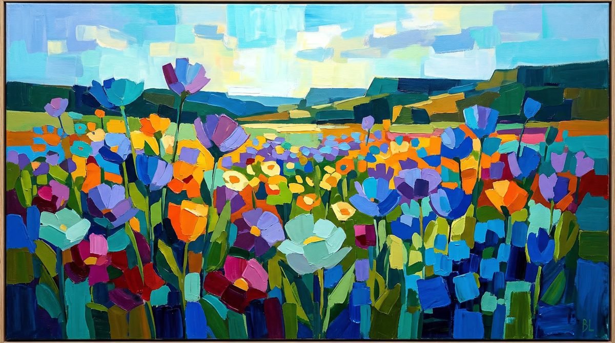 Barbara nous a adressé ses peintures et, d’emblée, nous avons écarquillé les yeux. Très vite, une évidence s’impose : ses œuvres ne cherchent pas à se définir. Elles invitent à la promenade, à une immersion sensible dans des paysages réinventés.