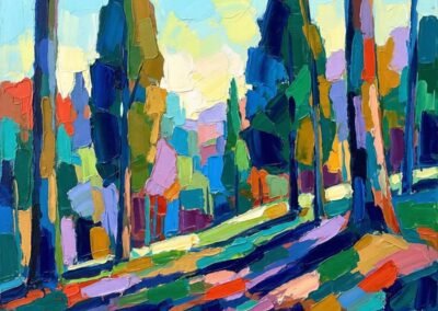 Ses peintures traduisent une relation intime à la nature, la lumière et les saisons deviennent matière picturale. En effet, sa peinture ne relève en rien de l’urgence.