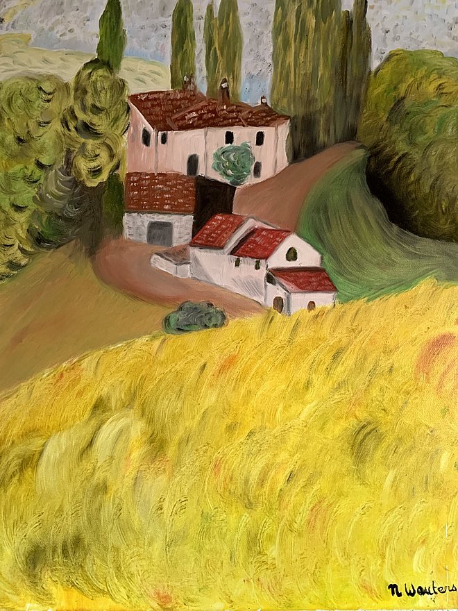 La peinture de Nicole Wauters semble tracer le contour d’un monde à part, à la fois simple et lumineux, où la couleur tient lieu de trait. Nicole peint comme on respire : naturellement, sans artifice, avec cette clarté de regard propre à celles et ceux qui savent encore s’émerveiller.