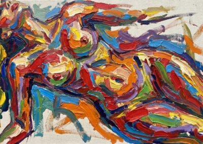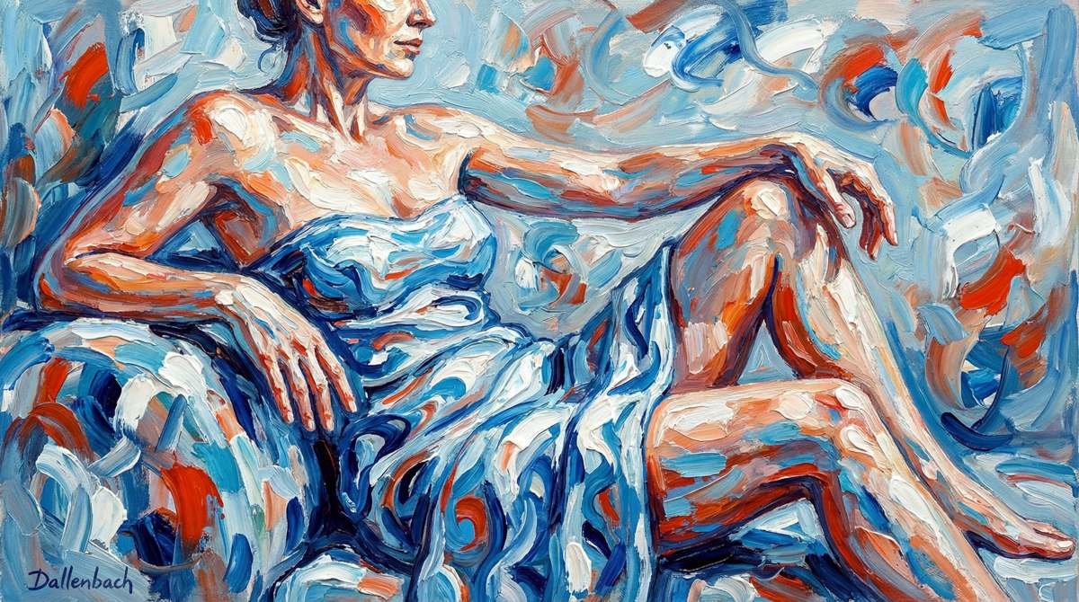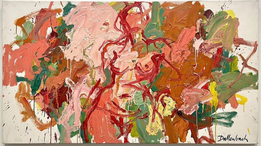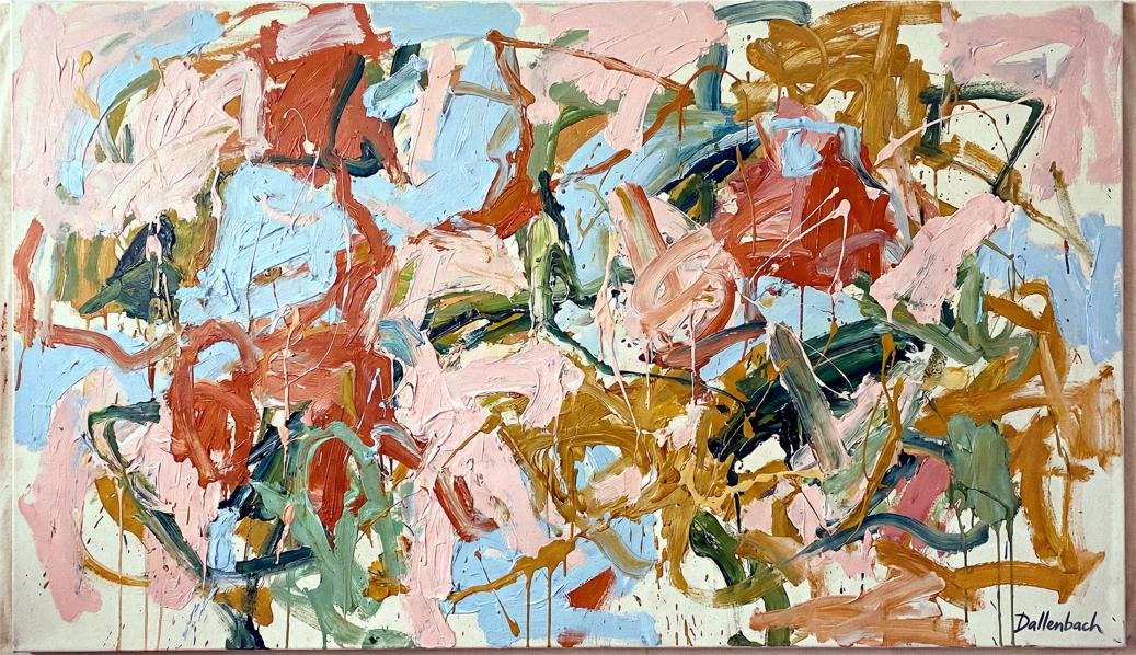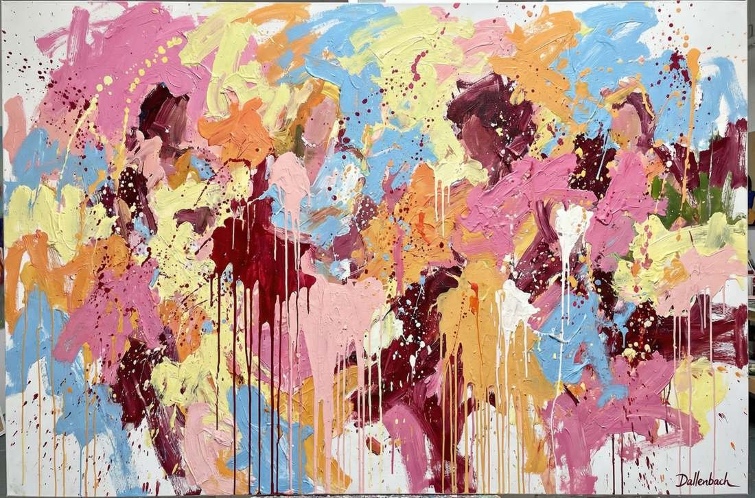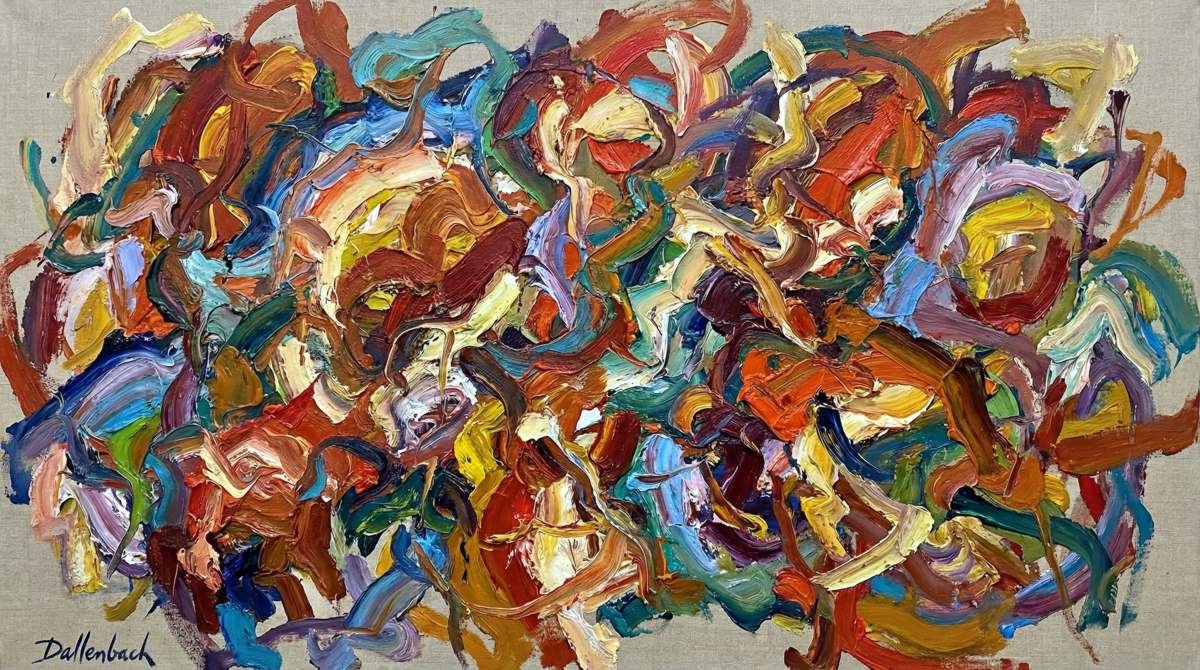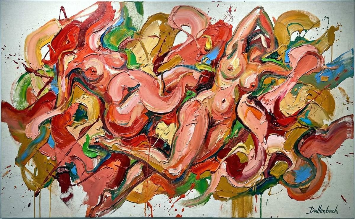 So drückt Dallenbach in ihren Kompositionen, in denen Farben mit offensichtlicher Sinnlichkeit wirbeln und sich überlagern, eine visuelle Dynamik aus, die eine Affirmation des Lebens, des Körpers und der menschlichen Emotionen sein will. Sie lädt uns ein, den Reichtum der bildenden Kunst neu zu entdecken, sowohl als taktiles Medium als auch als Ort des reinen Ausdrucks. Dieser Ansatz versöhnt Vergangenheit und Gegenwart, das Erbe der klassischen Malerei und die Explosion moderner Formen.