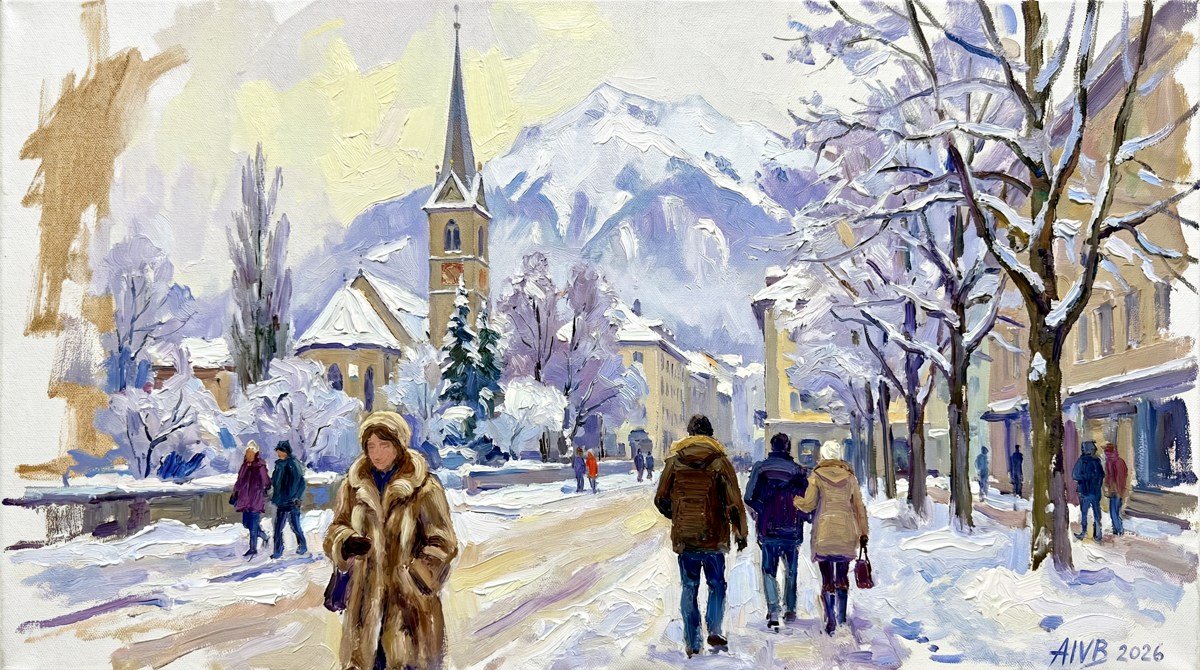 «Chur im Winter – imaginäres Gemälde», Öl und Acryl auf Leinwand – 2026.