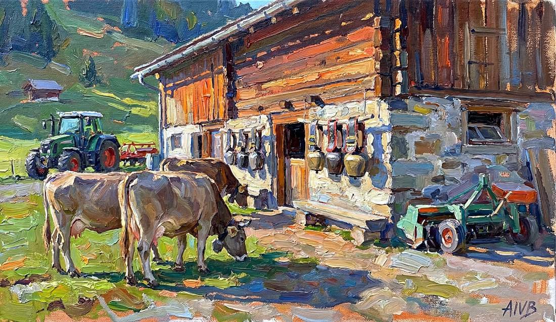 artemis-irenaus-von-baste-unsere-Almen-mit-Kühen-Ölgemälde-auf-Leinwand-2024